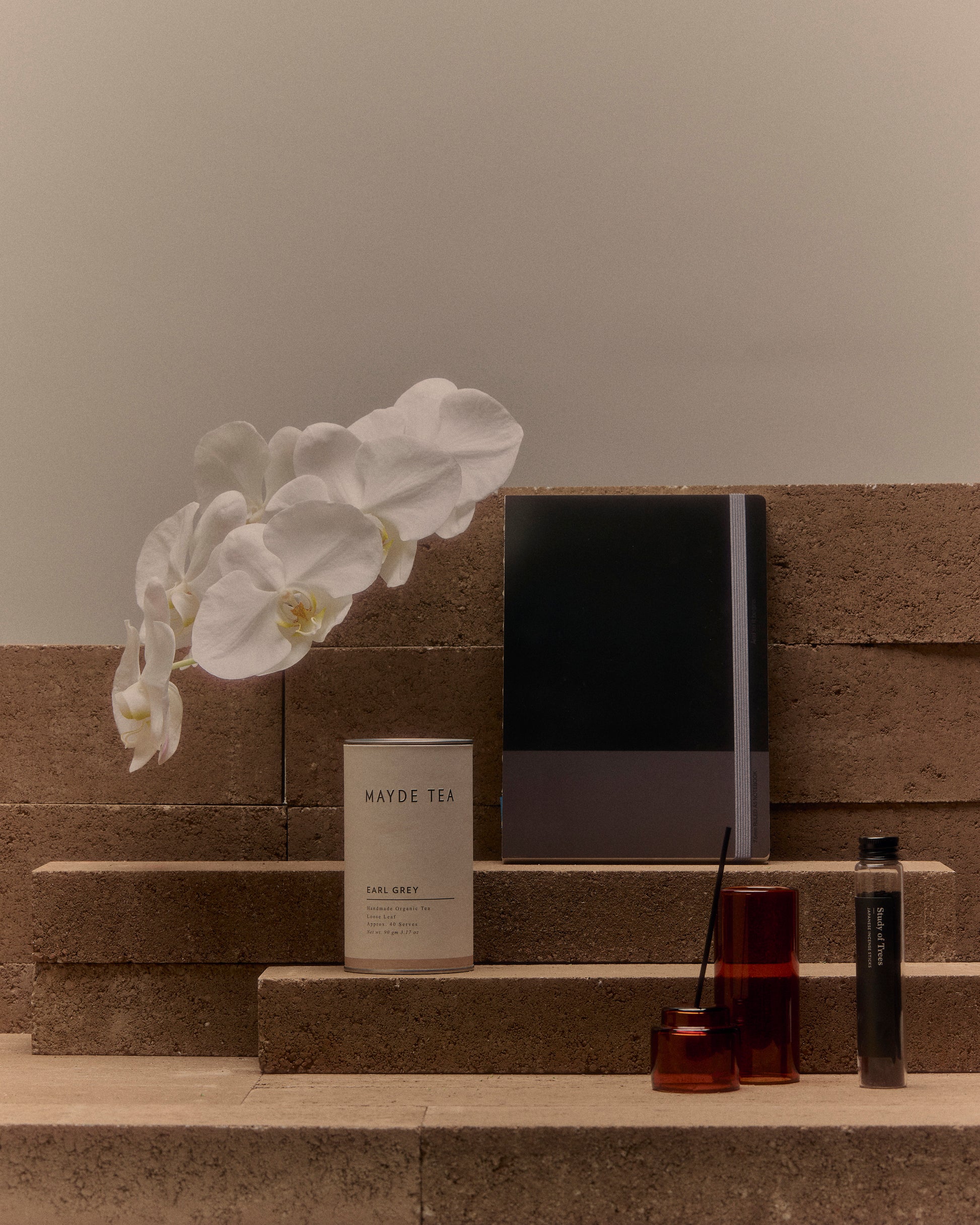 Open our Wellness box and unveil our beautiful blooms packaged in our premium white box with black grossgrain ribbon, alongside our hand selected and carefully curated items.
